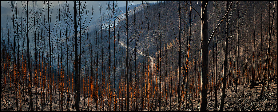 I am still speechless when I view this image. I shot this very early on Sunday the 9th of February 2009, just 36hrs after the deadly BLACK SATURDAY bushfires ripped through Victoria - taking 173 lives and shocking the entire nation in disbelief and grief. I had spent a lot of time in this area and forest over the years. For months I was brought to tears as I returned fortnightly to photograph and document the natural side of the tragedy. |