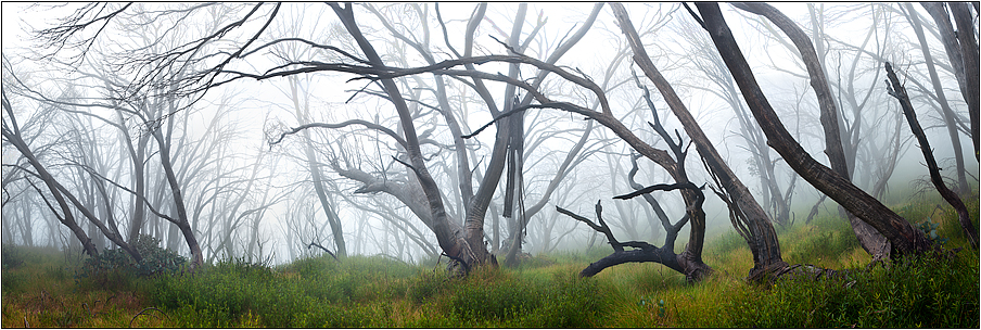 Remnant snow gums that were blazed during the 2003 Victorian bushfires that burnt over 1million hectares still stand defiantly as a stark reminder of the extremes of a harsh country. |