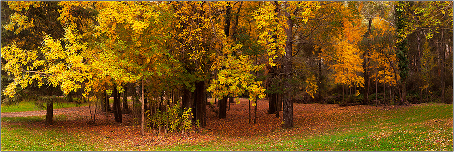 A stunning display of autumn colours in a park nestled in amongst the Australian bush and mountains of Victoria's north east. Just for a moment one could quite easily feel that they were in another hemisphere. |