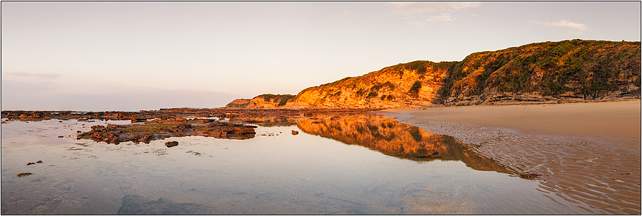 In the midst of a blistering summer heatwave with multiple days in the 40's the early morning sun takes on a tonality and richness of heat and a hot day ahead. It's a light not too often seen on the southern coastlines of Victoria. |