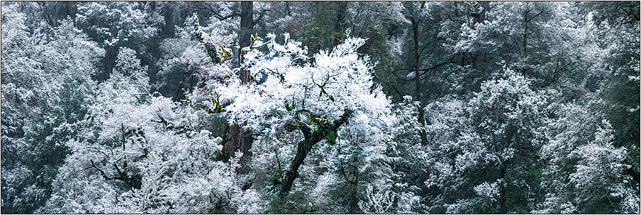 A winter cold snap sees temperatures and snow levels drop across southern Victoria. I'd had my eyes on this weather system for over a week counting down the days with the hope of having the opportunity it shoot an image such as this. Deep in the rainforest the snow flakes tumbled in the icy conditions. This particular ancient myrtle beech tree took on a crystal like appearance. I captured my images as the snow fell, the light faded and the lyrebirds sung - a magical moment indeed! |