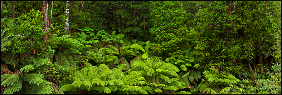 A deep lush valley in Tarra Bulga NP is filled with magnificent tree ferns and myrtle beech trees. |