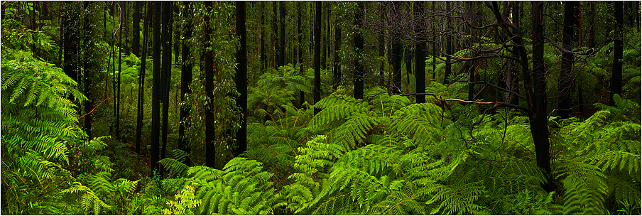 After the devastating Victorian 'Black Saturday' bushfires in 2009 this section of rainforest high in the Strzelecki ranges slowly returns. |