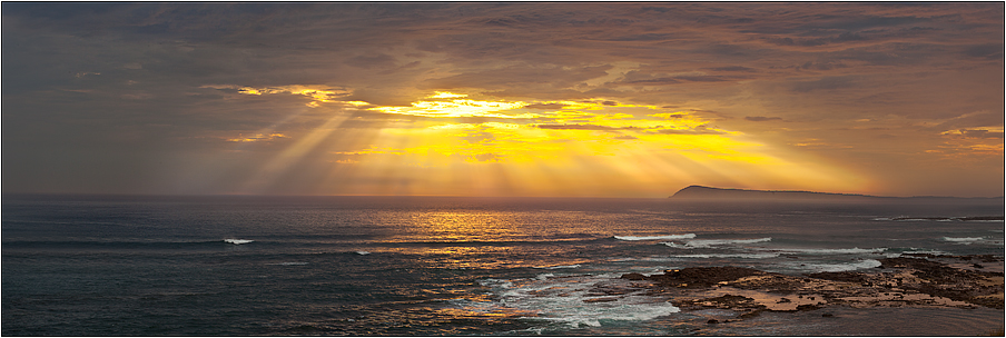 A weak afternoon thundstorm had just passed overhead and I was out looking for some magic light and colour. My efforts were rewarded with this spectacular golden coloured sunburst over Cape Woolamai and Bass Strait. |