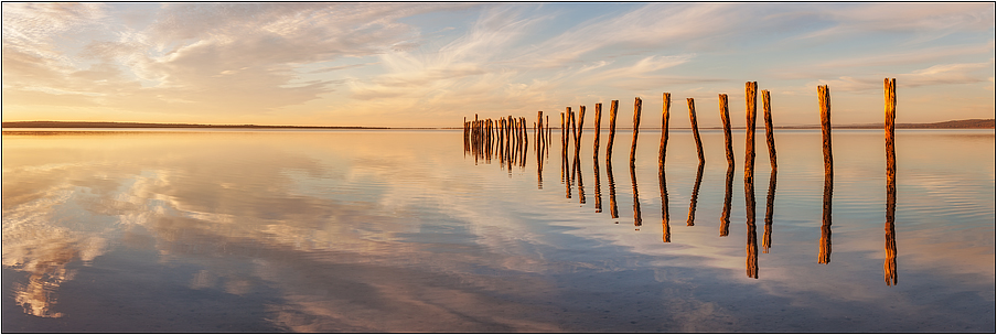A perfect autumn day ends with some spectacular light that really brings out the amazing textures in these old jetty pylons. With the bay like a sheet of glass I couldn't resist trekking out in knee deep mud to get this image. |