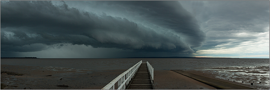 A spectacular gustfront develops on this now outflow dominant thunderstorm as it surges over French Island and Westernport Bay. Shortly after I had shot this image the area (and myself) were lashed with gale force winds and torrential rain as lightning slammed to earth from high above. |