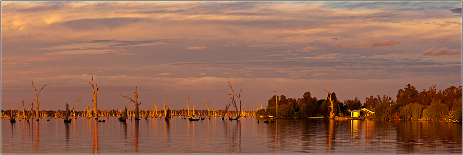 The last light is strewn across Lake Mulwala and kisses a gorgeous lakeside property.