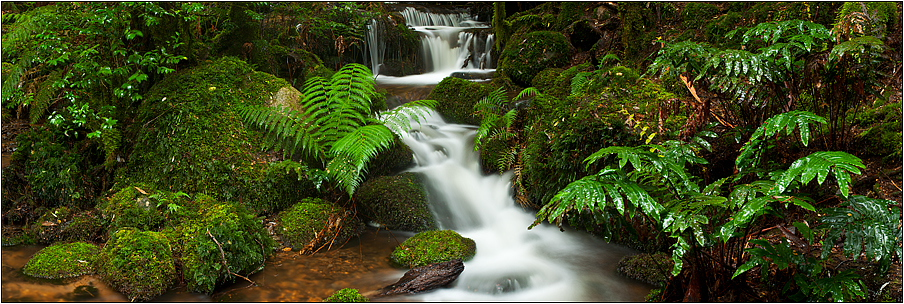 It was a freezing cold, wet, rainy day with snow falling just 4oom higher up the mountain. A good friend and I were out to explore the lower reaches of this gorgeous stream as it makes it way through the luscious cool tempoerate rainforests of VIctoria's Yarra ranges. I could believe my eyes when I saw this scene and I knew that I had to shoot it. |