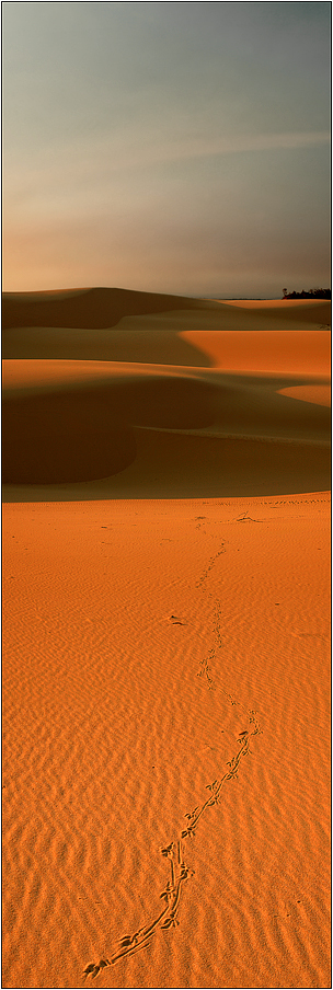 I was very fortunate to have found the monitor lizard tracks traversing the Thurra dunes in East Gippsland. I feel they add a real story and sense of interest in what really is a scene of textures and minimalism. |