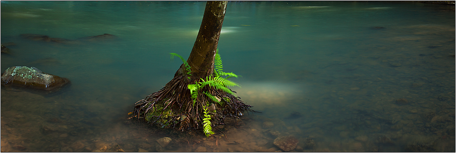 This palm tree holds it's grip in the calmer pools along the creek thus proividing a refuge for ferns to grow at it's base. I'm certain that it must have survived many a deluge and flood to get to this size, though I'm not sure how the ferns will fare next time round. |
