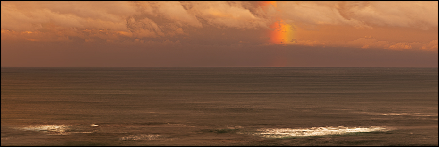 An approaching rain band glows in the morning light. I was very fortunate this time that not only was I out looking for a simplistic image so this rainbow amidst the morning colour and light was perfect in my mind. |