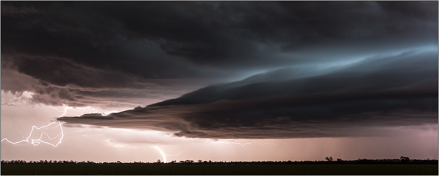 An inland nocturnal beast of a storm fires up and gets organised on the NSW central west slopes and plains between Lake Cargeligo and West Wyalong. Taken near Tullibigeal. |