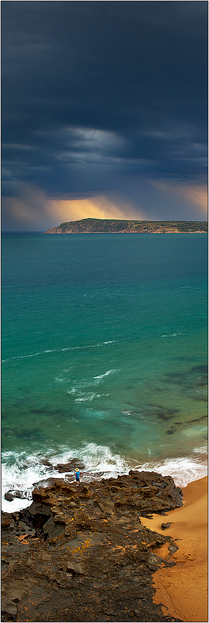 After a violent lightning strike and thundercrack strikes just beyond Cape Woolamai, a lone fisherman pauses for a moment to watch the approaching thunderstorm. I was wondering who would stick it out the longest out of the two of us, sure enough I did, but only because of my proximity to my vehicle I beat him to the safety of the carpark! |