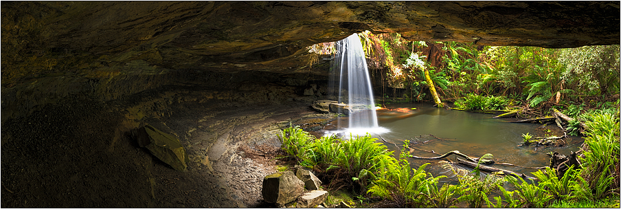 With spring rains lower Kalimna falls delicately spreads it's wings over this large rock ledge in the stunning Otway ranges. |