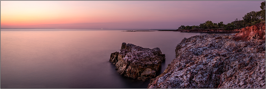 Another hot day in the Northern Territory's build up season draws to a close. This time looking out overe the tranquil waters and pastel colours of Darwin's East Point reserve. |