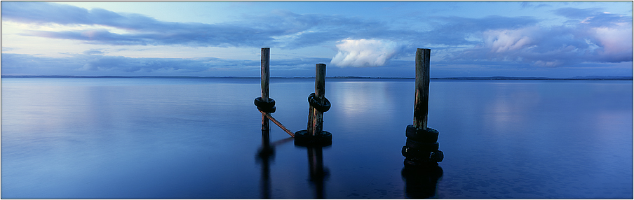 A very chilly winter's day and the bay is shimmering like a mirror. My Fuji 6x17 film camera was the perfect tool for a long exposure to do this scene justice. |